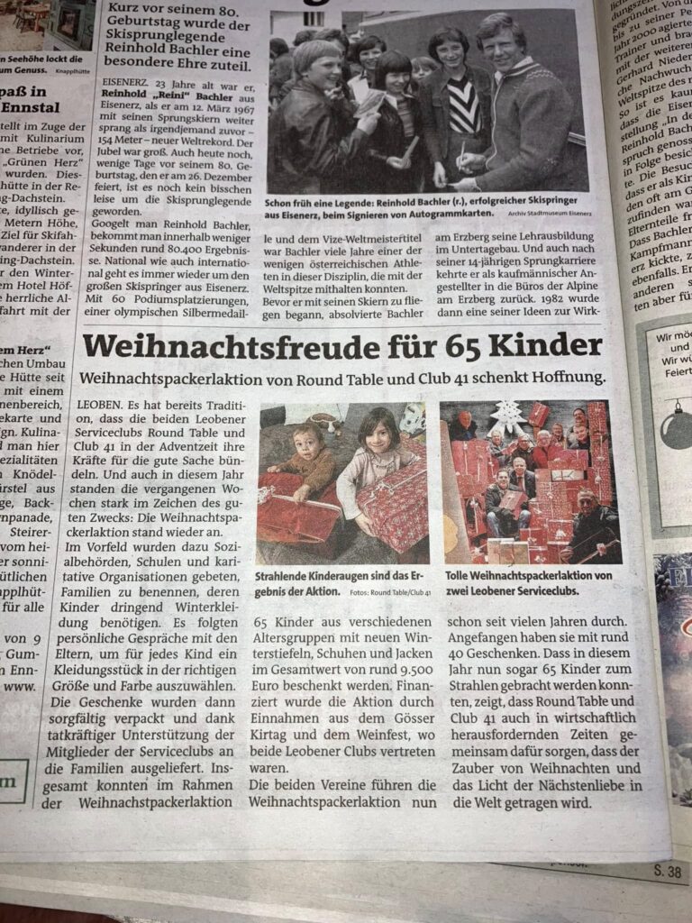 Club 41 Leoben veranstaltet Money-Raising Projekte und ist vertreten u.a. am traditionellen Gösser Kirtag oder dem gemütlichen Weinfest am Leobener Hauptplatz. Aufgrund von Sponsorings diverser Firmen als auch Ihren Spen-den sind wir in der Lage in Not geratenen Menschen in der Region zu helfen. Hierfür möchten wir uns sehr herzlich bei all unseren Spendern bedanken!
